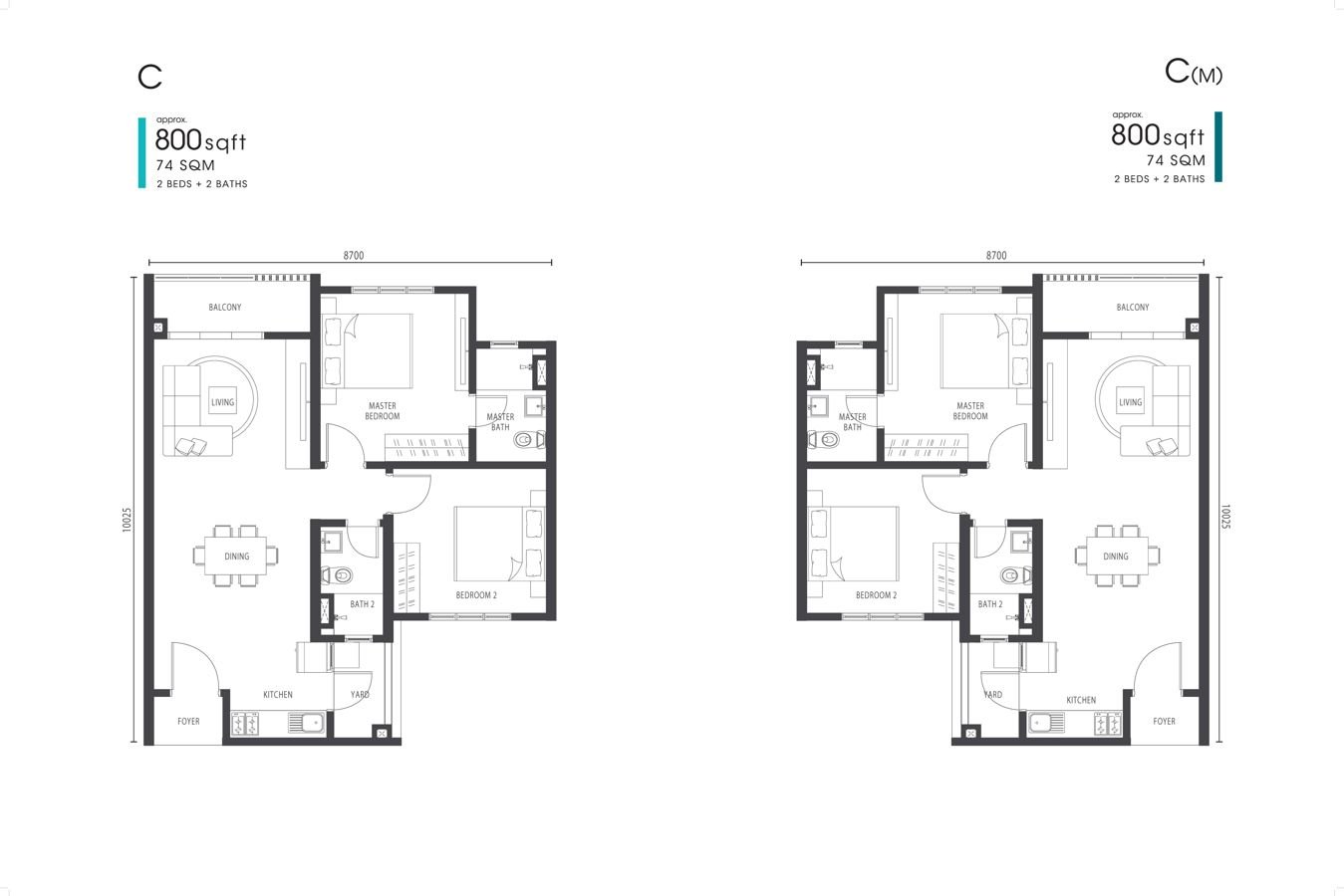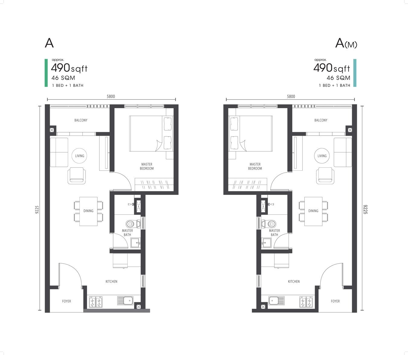 - 7 unit layouts from 490 – 1,300 sq.ft