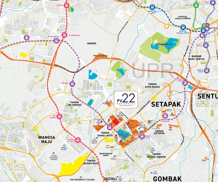 PV22 Residences — just 400m from Setapak Central Mall, near MRT3 Circle Line and major highways like MRR2 and SPE for seamless connectivity.